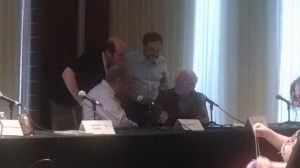 I didn’t remain the whole weekend-left Sunday evening at about seven so I could spend memorial Day with my family. However, the last panel I attended, Tales from the Slush Pile, I did snap my first, last, and only picture from inside the hotel. (I’ll get better at that) The panelists acted out a skit from a submission in a hilarious spontaneous theater performance that had the whole room in hysterics.